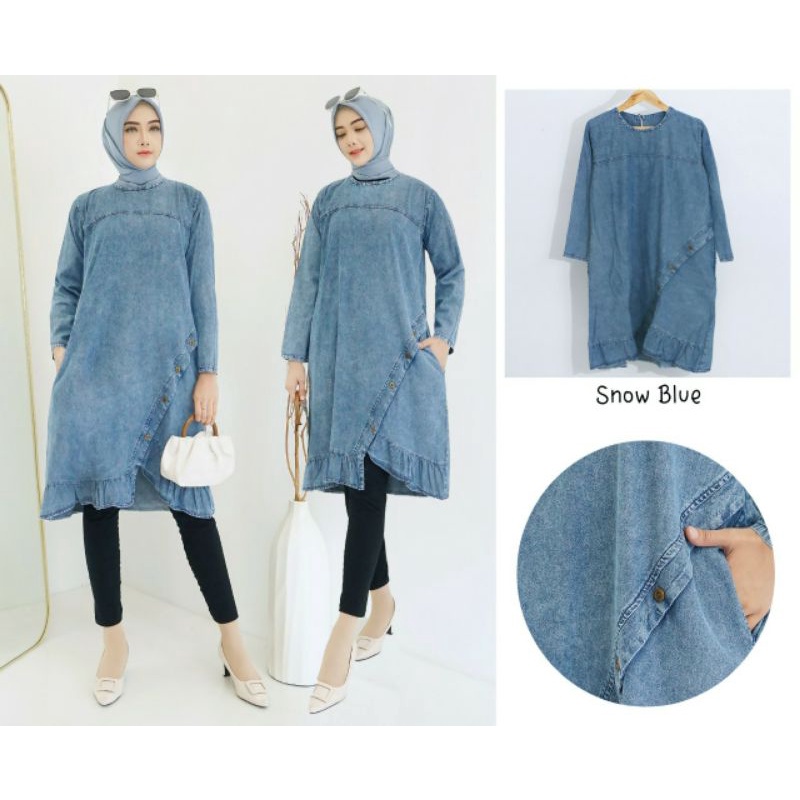 Fashion Muslim > Atasan Muslim Wanita > Tunik > Ziera Jeans Tunik, TUNIK JEANS WANITA CANTIK MODIS FIT XXL LD 116 BAHAN JEANS WASH IMPORT TERMURAH KEKINIAN OOTD