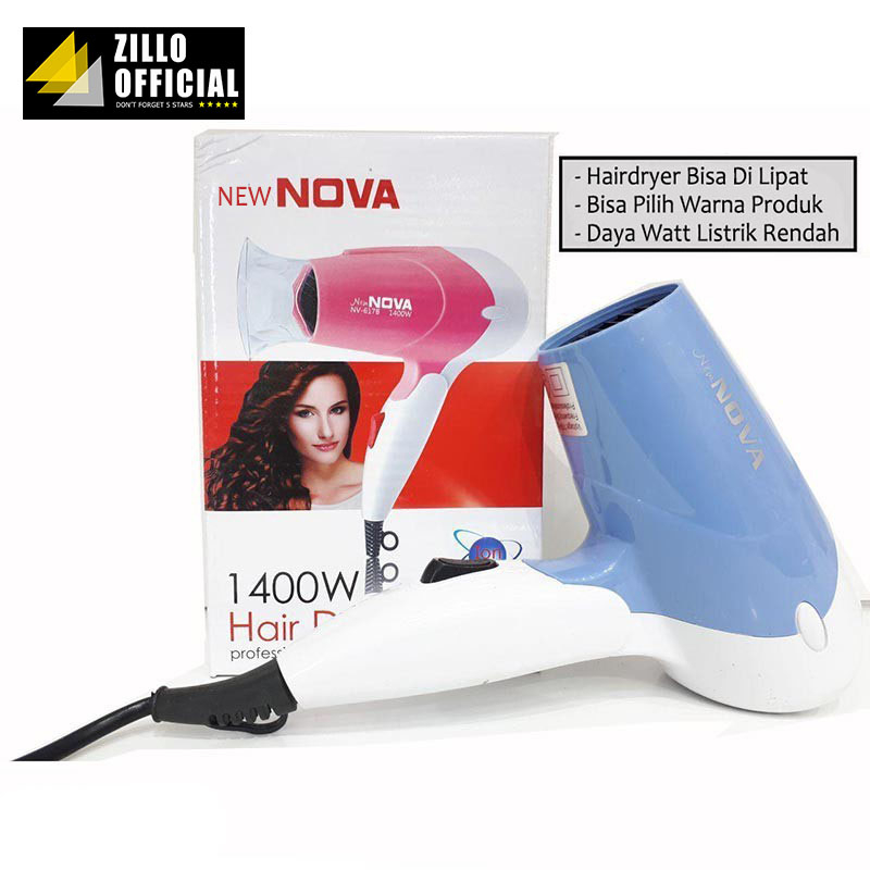 BONUS HAIRDRYER * Hair Dryer Merk Nova NV-617B (Ukuran Lebih besar dan lebih bagus dari NV1290) untuk itu harga lebih mahal Spesifikasi: Type : NV-617B 2 Mode kecepatan : medium & panas Dimensi produk Tinggi = 22,5 cm Panjang = 18 cm Lebar = 6,6 cm Warna: Biru & Pink (Silahkan dipilih) Tegangan: AC 110-220V Frekuensi: 50hz Daya Listrik = 60 Watt (Di Dus tertulis 1400W itu bukan Watt , Hanya Type)