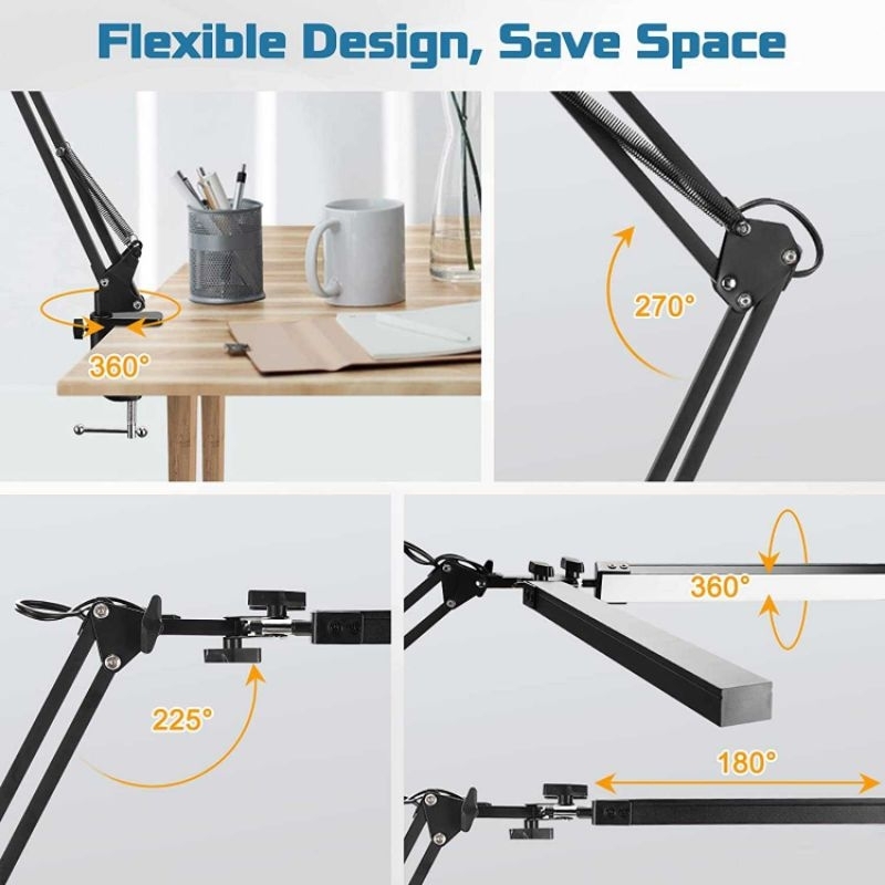 Dua Kepala dan Leher Fleksibel Berbeda dengan lampu meja lainnya yang hanya memiliki satu kepala, lampu meja ini memiliki dua kepala. Dua kepala lampu ini bisa Anda atur sudutnya hingga180 derajat. Sementara itu, desain lehernya juga bisa Anda atur ke atas atau ke bawah dengan kemiringan hingga 270 derajat.