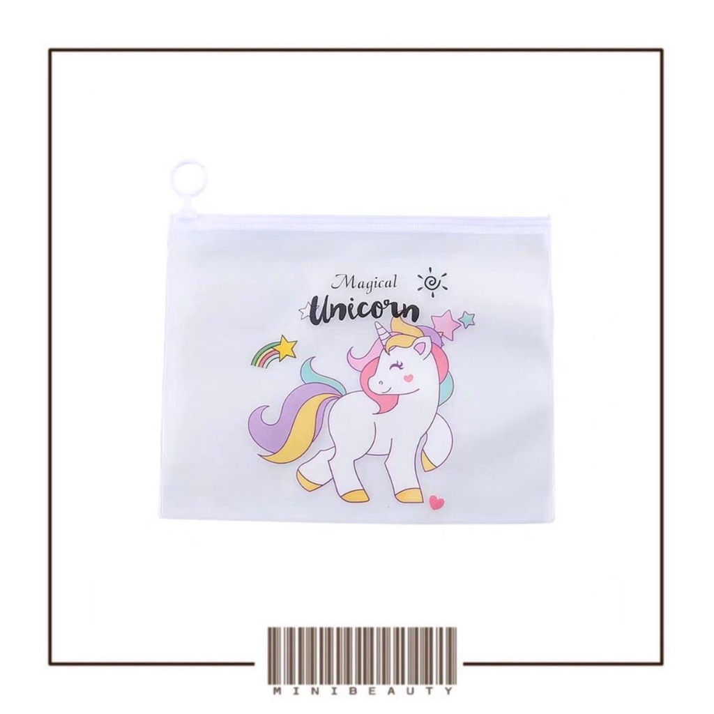 zipper bag unicorn pouch tempat pensil transparan pouch serbaguna pencil case pouch tas kosmetik transparan motif karakter lucu