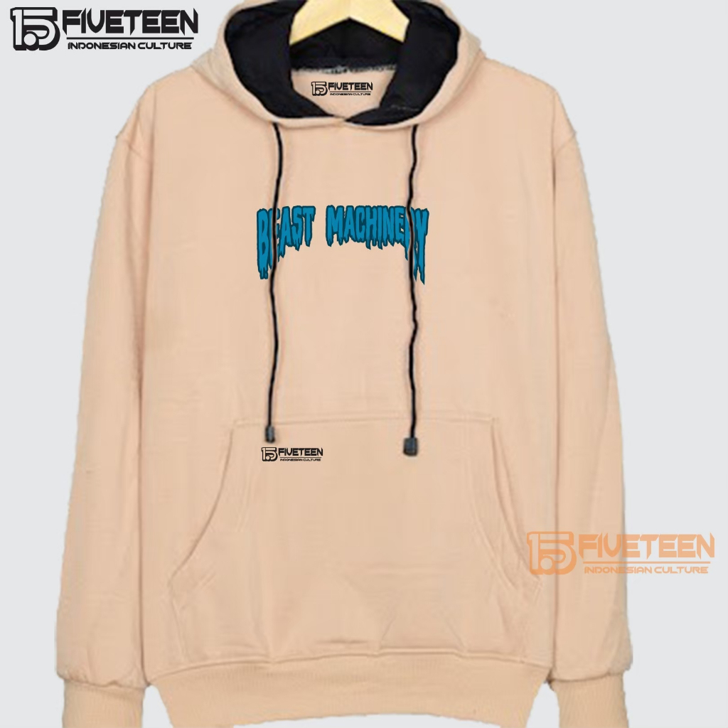 Detail zipper hoodie oversize pria wanita xxl jumbo warna crem kardus list beast machinery 05 15 fifteen jaket cowok cewek terbaru 2023