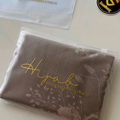 Zipper Custom Pouch Mika Hijab Square Size 20×15 Bahan Pvc Dof 0,15 Micron Kualitas Premium Anti Air