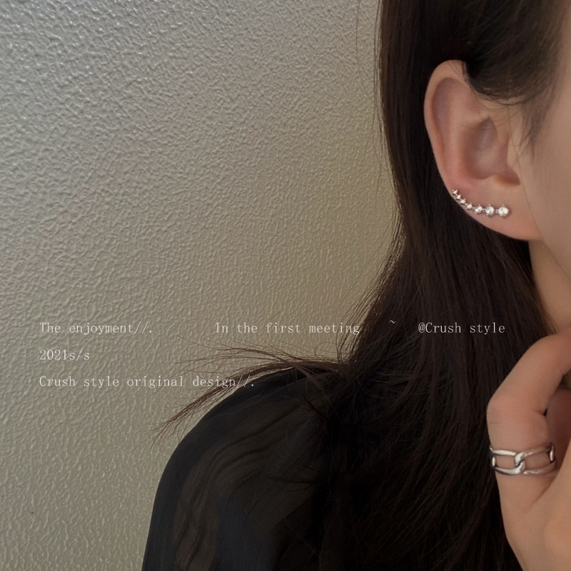 💛 Nama: Anting-anting zirkon wanita musim panas niche desain merasakan aksesoris telinga temperamen pejantan senior