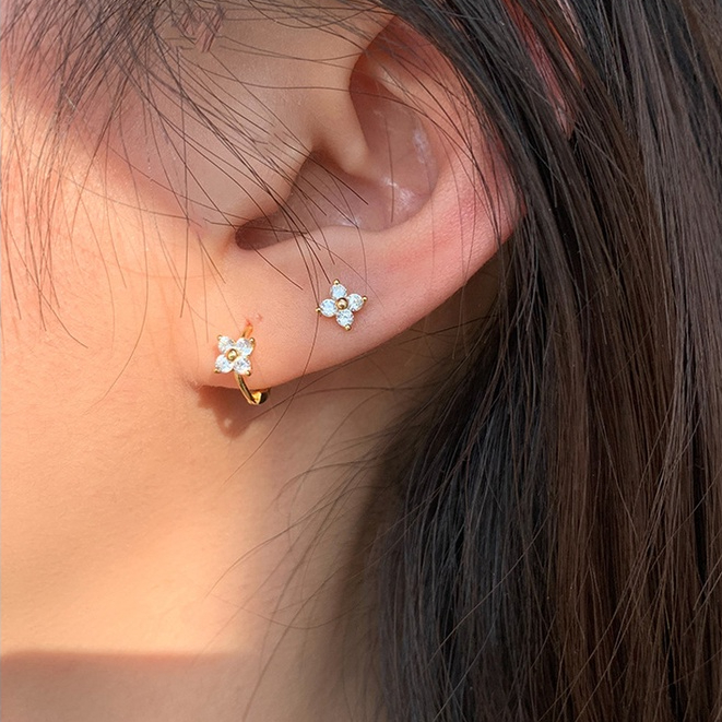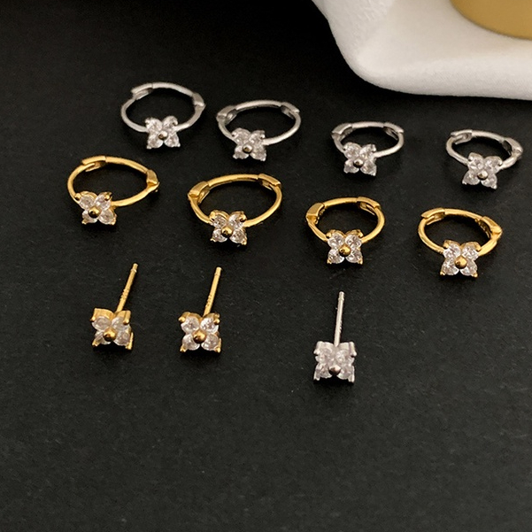 Detail Zirkon Empat Daun Anting Rumput Edisi Korea Kecil Segar Manis Beruntung Rumput Zirkon Anting