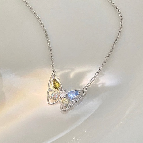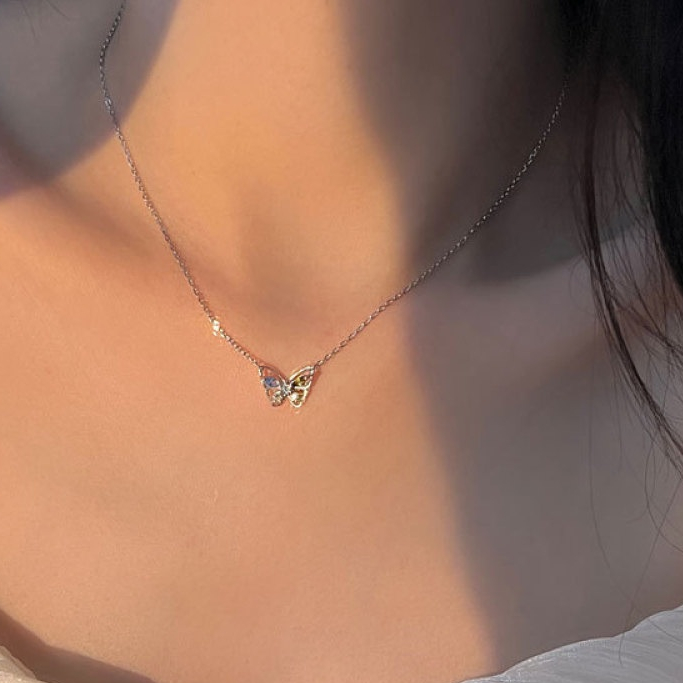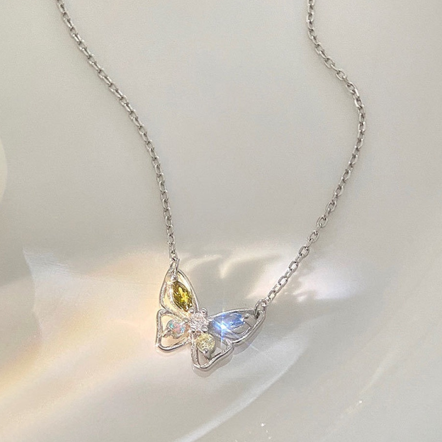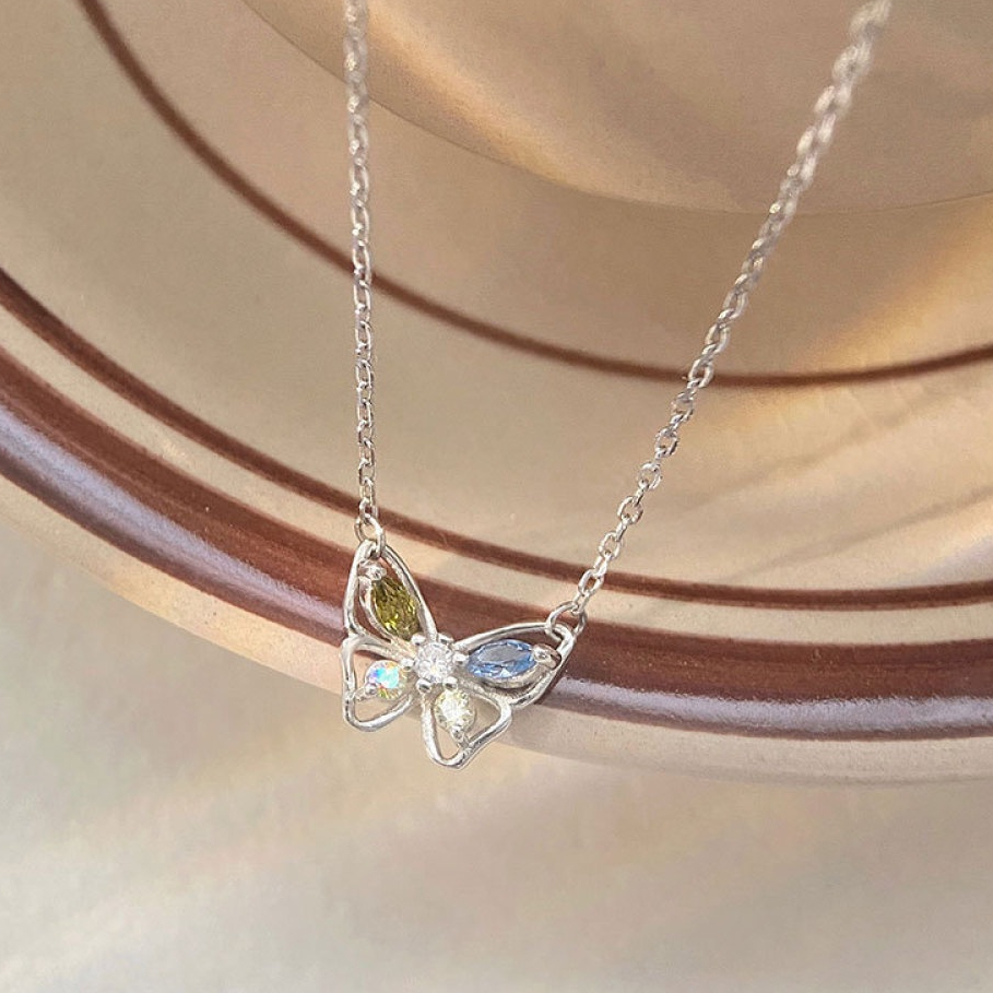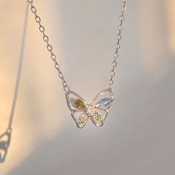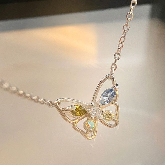 Aksesoris Fashion > Kalung > Liontin > Zirkon Warna-Warni Kupu-Kupu Liontin Kalung Wanita Rantai Choker Bridal Perhiasan Hadiah