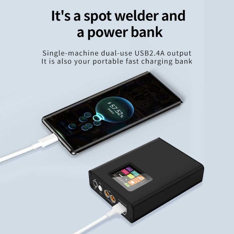 Kapasitas Baterai Besar Kapasitas baterainya mencapai 5000 mAh membuat mesin las ini mampu mengelas dalam durasi waktu yang lama. Saat baterai habis akan akan peringatan yang muncul di layar LCD sehingga Anda dapat langsung mengisi ulang baterai. Memerlukan waktu 2 sampai 3 jam untuk mengisi penuh baterai. Karena kapasitas baterainya yang besar, alat ini juga bisa Anda gunakan sebagai power bank.