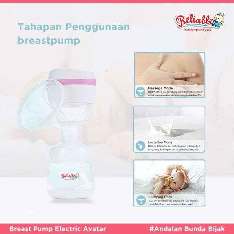 Pompa ASI Elektrik Avatar dari Reliable ini merupakan Pilihan Bunda Bijak karena mempunyai kelebihan dibandingkan merk lain nya dengan desaign yg menarik dan variasi warna yg beragam dan tentunya sangat membantu bunda. Free Bag dalam Kemasan dan dilengkapi LED Screen.