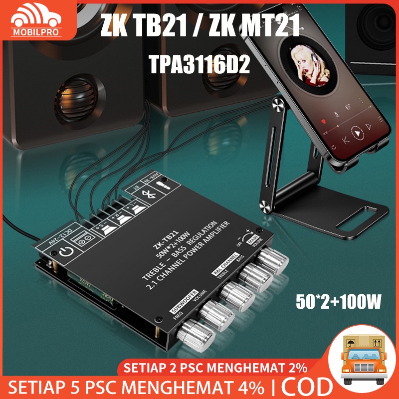 Elektronik > Perangkat Audio & Speaker > Amplifier & Mixer > ZK TB21 ZK MT21 Modul Amplifier Tpa3116d2 50WX2+100W Power Amplifier Bluetooth Mixer Digital Hifi Amplifier