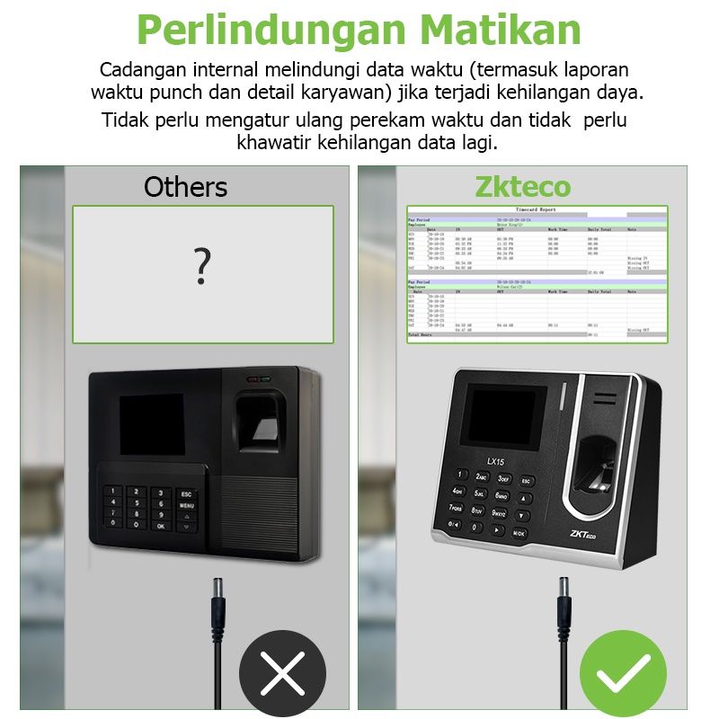 Detail ZKTeco Mesin Absen Sidik Jari LX15 Bahasa Indonesia Finger print Mesin Absensi Penempatan Mesin Di Meja/Di Dinding
