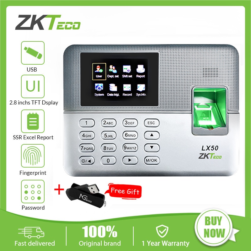 Fitur Standar : '' Sensor optik ZK yang andal(LX50) '' Menyimpan 500 template ''Setiap karyawan hanya perlu memasukkan 1 sidik jari '' Layar TFT warna 2,8 inci untuk navigasi yang mudah '' Kurang dari 1 detik pengenalan pengguna '' Menyimpan 50.000 transaksi '' Port USB untuk transfer data manual '' Membaca Sidik Jari dan / atau Pin '' Instruksi Manual: Berisi manual instruksi produk '' Catatan: Jika Anda memerlukan instruksi versi elektronik, Anda dapat meminta layanan pelanggan toko '' Cara mengunduh data laporan: ekspor laporan menggunakan USB '' Garansi : 1 Tahun (Resmi ZKTeco Official Store)