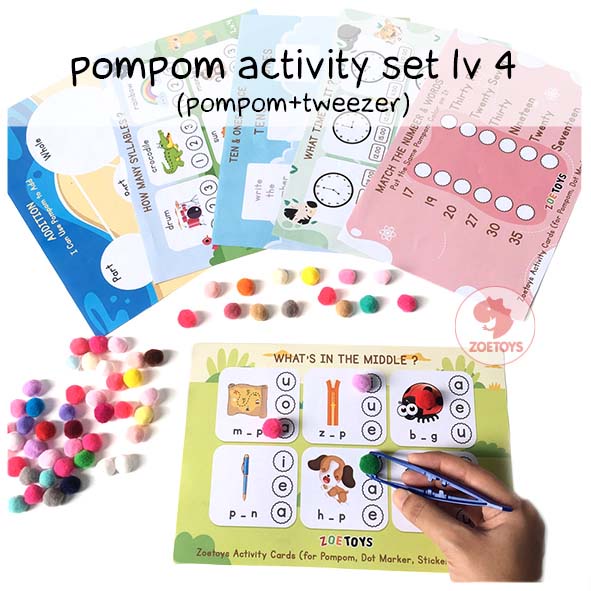 Detail Zoetoys Paket Pompom Activity Worksheet Set | Kartu Bermain Aktivitas Anak | Pom pom Cards for Kids | Paket Edukasi Belajar Anak