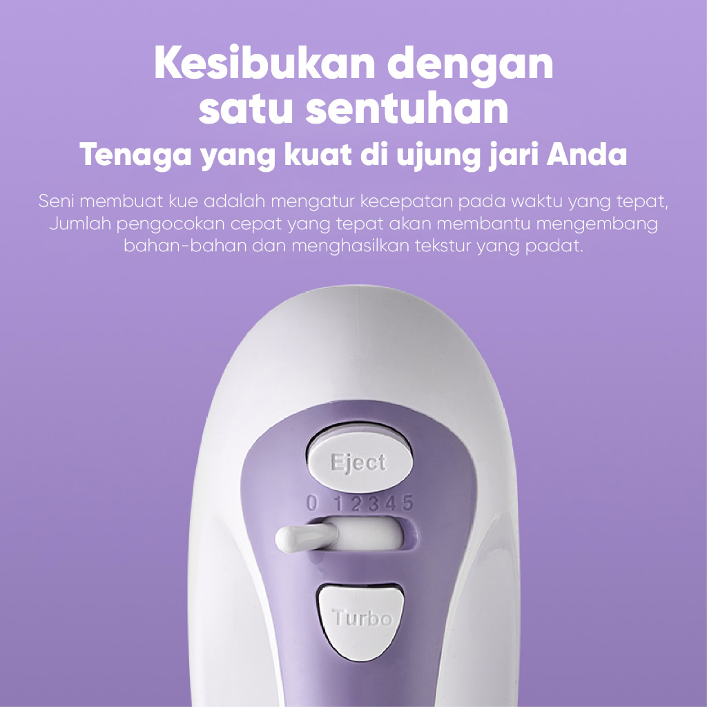 Fitur. 1. Daya emas 150W, hemat energi dan daya besar. Motor berdaya besar yang bekerja dengan kecepatan tinggi, mengaduk dengan cepat, an menghemat waktu dan tenaga untuk memanggang. 2. Penyesuaian kecepatan area lebar 5 kecepatan, kecepatan 1-2 untuk mencampur saus, mencampur cairan, aplikasi gourmet: kue tar buah, kue udara. Kecepatan 3-4 untuk pasta, mencampur adonan, aplikasi gourmet: milkshake stroberi, kue selai. kecepatan 5 untuk mengocok krim campuran, pengocok telur cepat, aplikasi gourmet: puff krim, biskuit mentega, dll. 3. Turbo cepat, sekali sentuh, tenaga yang kuat di ujung jari Anda. Seni memanggang kue adalah menyesuaikan kecepatan pada waktu yang tepat, jumlah pengocokan cepat yang tepat untuk mendapatkan tekstur yang lembut dan padat. 4. Desain berdiri, tidak ada dayung di lantai. Desain berbobot dengan bagian bawah rata. Dayung dapat diletakkan di atas meja kapan saja di antara sesi mencambuk, menjaga dayung dan meja tetap bersih dengan menggantungnya secara horizontal. 5. Pelepasan dayung dengan satu sentuhan dan penggantian tongkat yang mudah. Dayung secara otomatis dikeluarkan saat tombol tekan ditekan, tidak perlu menarik dayung dengan keras untuk mencegah bahan menempel di tangan Anda dan memengaruhi operasi selanjutnya. 6. Desain dayung ganda untuk kekuatan yang merata dan tidak ada percikan. Dayung ganda dipasang ke arah yang berbeda sesuai dengan gaya hidrodinamis, sehingga bahan tercampur lebih merata dan percikan berkurang. Parameter: Model produk: YB-HM01 Warna produk: Ungu Putih Berat bersih produk: 767g Ukuran produk: 173*70*130mm Nilai daya: 150W Nilai tegangan: 220V ~ 50Hz