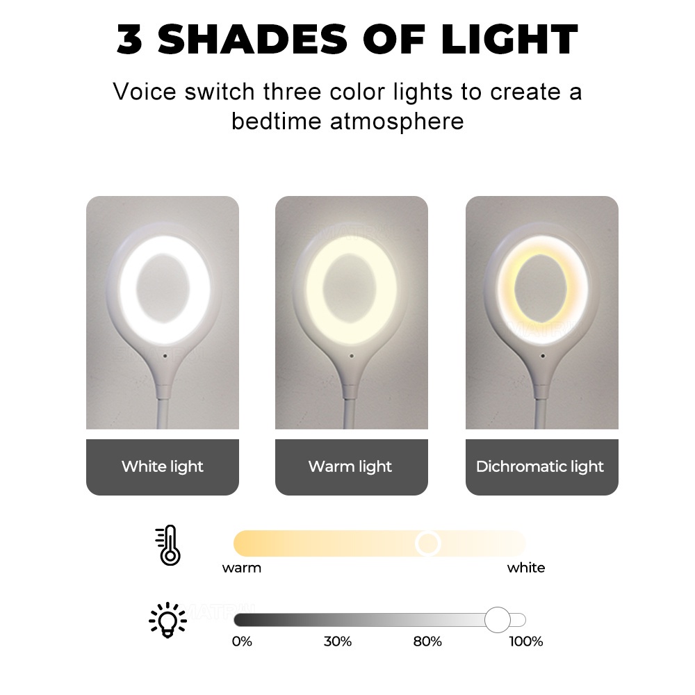 Elektronik > Lampu > Lampu Tidur > ZOLELE Lampu Malam Baca Belajar Perlindungan Mata LED Desktop Kontrol Suara Cerdas USB Langsung Colok Lampu Portabel 3 Warna Pintar Lamp VL1