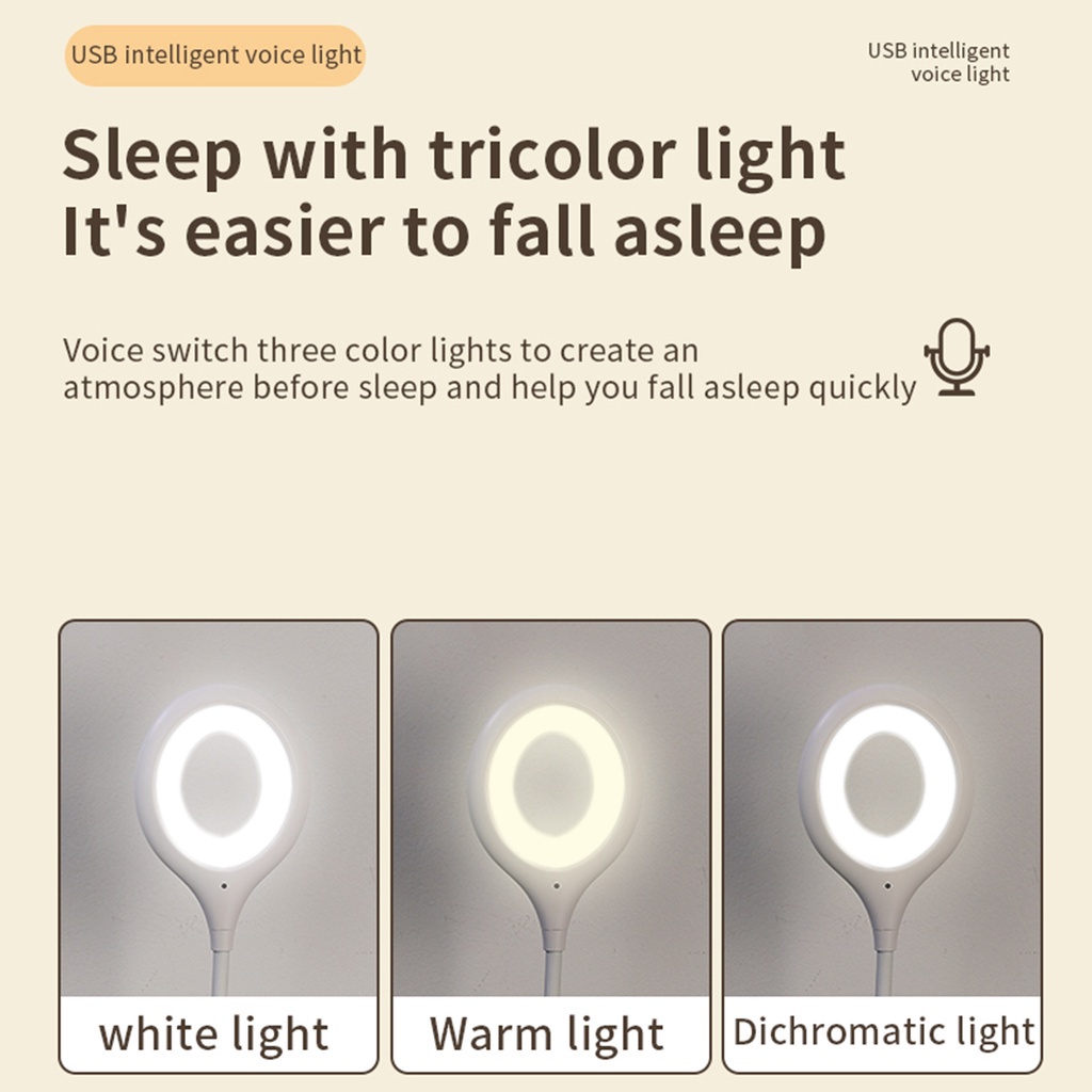 Elektronik > Lampu > Lampu Tidur > ZOLELE Lampu Malam Baca Belajar Perlindungan Mata LED Desktop Kontrol Suara Cerdas USB Langsung Colok Lampu Portabel 3 Warna Pintar Lamp VL1