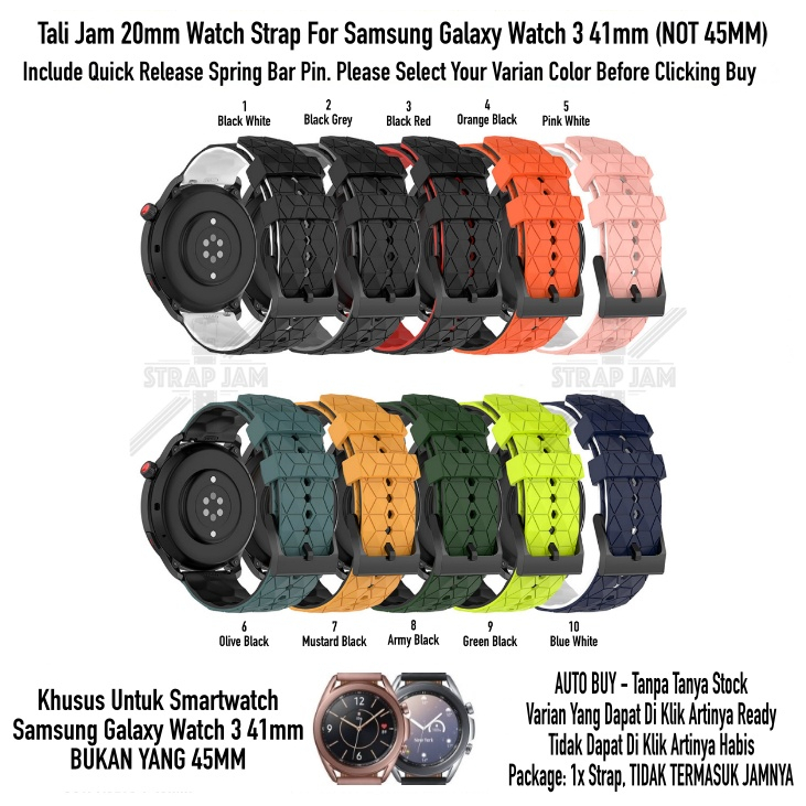 Detail ZQT Strap 20mm Samsung Galaxy Watch 3 41mm - Tali Jam Silikon Rubber Quick Release