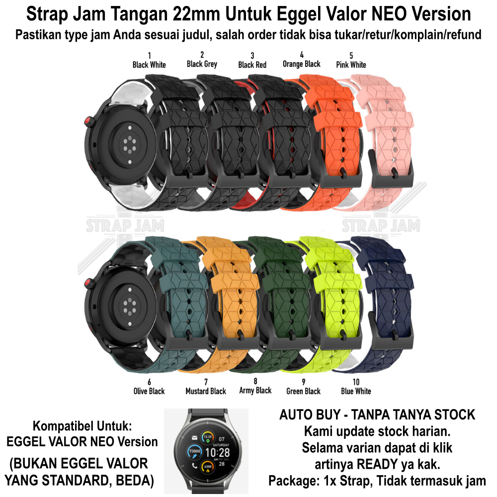 Handphone & Aksesoris > Perangkat Wearable > Aksesoris Perangkat Wearable > ZQT Strap 22mm Eggel Valor Neo - Tali Jam Tangan Silikon Rubber Quick Release