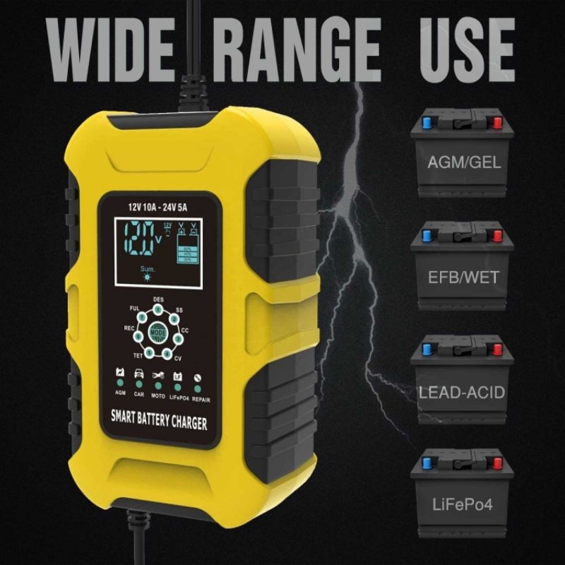 Informasi Produk ZUIDID Charger Baterai Aki Mobil Motor Automatic Detection 12V 24V - FBC122410D Tidak menemukan bengkel saat daya aki mulai melemah? Anda bisa menggunakan charger baterai aki yang satu ini. Dengan fitur pengenalan otomatis, Anda bisa menggunakannya untuk mengisi ulang baterai aki motor, mobil, truk, hingga boat yang bertegangan 12 V atau 24 V. Lengkap dengan kombinasi sistem pengisian otomatis dan pengisian 7 tahap yang dapat memperpanjang umur baterai aki Anda.