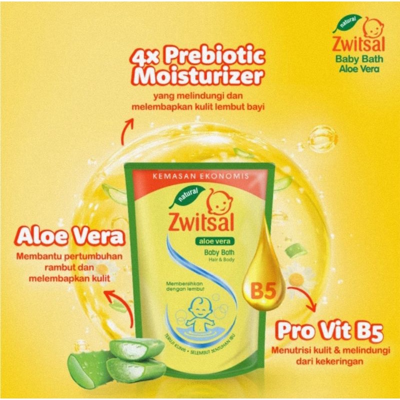 Sabun mandi baby Zwitsal Baby Natural Bath Hair & Body: - Diperkaya dengan Aloe Vera, Chamomile, dan pro Vit B5 untuk kulit lembut & rambut berkilau - Hypoallergenic - Dermatological tested - Mild on eyes - pH Netral