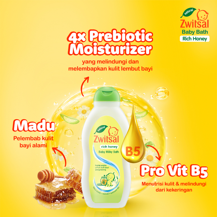 Keunggulan: - Mengandung formula pH balanced sehingga mampu membersihkan kulit si kecil dengan lembut - Mengandung protein susu untuk menutrisi serta menjaga kulit tetap sehat, halus, dan segar - Kaya akan madu sebagai pelembap alami