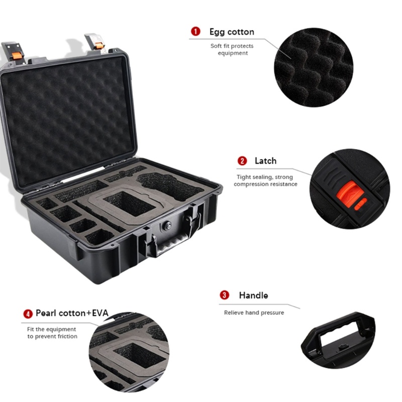 Koper Portabel untuk Mavic Air2/ Air 2S Hard Shell Tahan Air Kotak Anti Jatuh Fitur: baru dan berkualitas tinggi Praktis dan kapasitas besar. Dapat menampung dan aksesori. Tahan air profesional, kotak pengaman tertutup rapat dan disegel, yang secara efektif dapat menghindari rembesan air dan kebocoran air saat percikan atau percikan air. Kekuatan tinggi, anti-jatuh, anti-kompresi, tahan korosi. Ini mengadopsi bahan keras super tahan benturan, yang tahan jatuh, tidak mudah berubah bentuk-, dan memiliki daya dukung yang kuat. Dukungan bagian dalam tahan guncangan bermutu tinggi, pembukaan cetakan yang tepat, penyimpanan dekat untuk melindungi peralatan Anda. Pegangan yang nyaman, non-slip dan tahan aus, mengurangi tekanan tangan.
